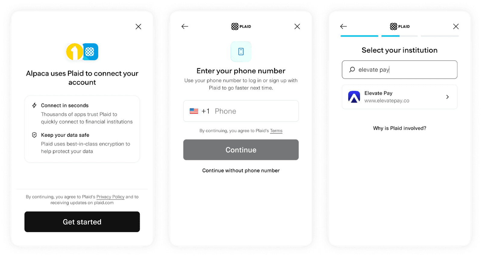 • When the Plaid window opens, click Get started.