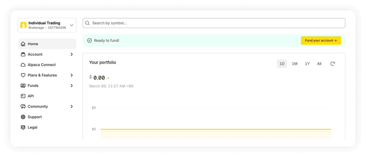 • Log in to your Alpaca account.