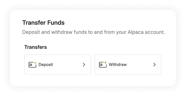 • Under the Transfer Funds menu, select Deposit to initiate moving funds into your Alpaca account.