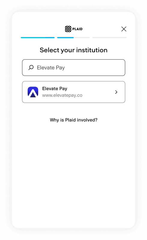 In the search bar under “Select your institution,” type and choose Elevate Pay.
