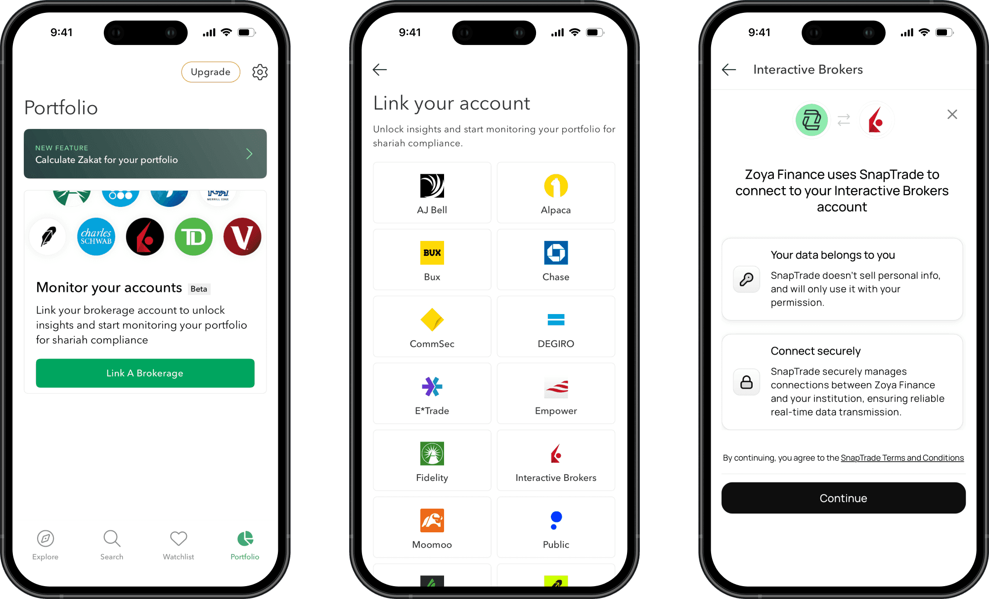 The solution? Link your active IBKR account directly to the Zoya app using SnapTrade. Zoya will continuously scan the actual assets held in your IBKR portfolio and alert you immediately if any of your holdings fail the compliance tests.